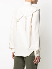 long-sleeved strappy shirt ivory-white cotton adjustable crossover rear straps classic collar front button fastening long sleeves buttoned cuffs front flap pockets asymmetric hem Made in Italy Composition Cotton 100% SIZE & FIT Model measurements Height 6 ft 1 in(1.85 m) Bust/Chest 35.82 in(91 cm) Hips 37.79 in(96 cm) Waist 29.13 in(74 cm) Washing instructions Dry Clean Only