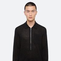 Relaxed polo sweater in a textured knit, made in an airy linen. Fits true to size. Model is 6’3” and wears size M. DETAILS - Lightweight textured knit - Elongated half-zip - Pointed collar - Chest pocket - Ribbed collar, hem, and cuffs - Relaxed fit - P04HM701 MATERIALS & CARE - Composition: 100% linen - Dry clean with any solvent except trichloroethylene. - Finished Garment Manufacturing Country/Region: China - Fabric Production Country/Region: China - Dyeing Country/Region: (of fabric) China - Finishing Country/Region: (of fabric) China