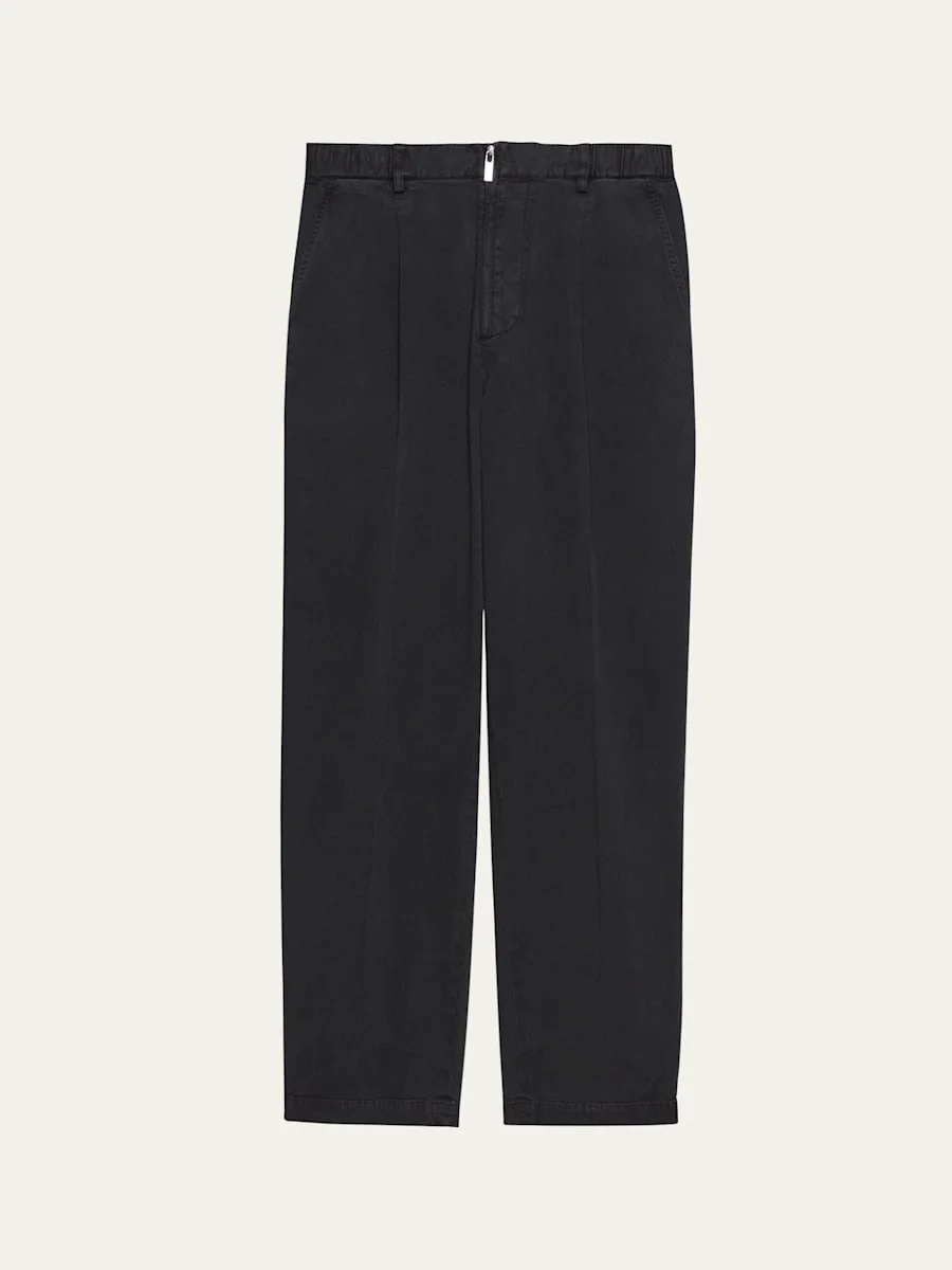 Helmut Lang zoot pants, featuring a pleated front Approx. measurements: 13.1" rise; 30" inseam Full length Regular rise Relaxed legs Loose fit Side pockets; back flap pockets Exposed front zip fly; belt loops Cotton/elastane Unlined Machine wash cold Imported Online Inquiries: BGS21_NDDEQ| Store Inquiries: #5028205