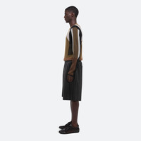 Relaxed shorts in pleated leather, with a straight leg cut and hidden side pockets. Fits true to size. Model is 6’1” and wears size M. DETAILS - 100% lambskin leather with pressed pleats - Elasticized waistband with interior drawstring - Slip pockets on sides - Patch pockets on back with metal logo clip - Fully lined - 11 ¼” inseam and 27 ½” leg opening - P02HM202 MATERIALS & CARE - Composition: 100% sheep leather - Professional leather clean only - Finished Garment Manufacturing Country/Region: India - Fabric Production Country/Region: India