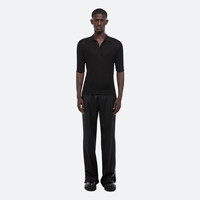 Fitted polo shirt in sheer pointelle rib knit. Fits true to size. Model is 6’1” and wears size M. DETAILS - Sheer pointelle rib knit - Pointed collar - Elbow-length sleeves - Ribbed collar, hem, and cuffs - Metal-wrapped logo buttons - Slim fit - P02HM701 MATERIALS & CARE - Composition: 88% viscose, 12% nylon - Dry clean with any solvent except trichloroethylene - Finished Garment Manufacturing Country/Region: China - Fabric Production Country/Region: China - Dyeing Country/Region: (of fabric) China - Finishing Country/Region: (of fabric) China - Spinning: (of fabric) China