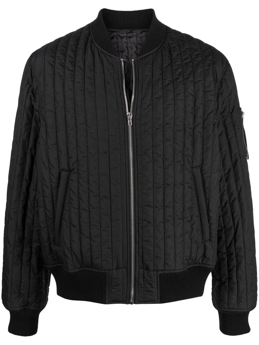 quilted zip-up bomber jacket Highlights - Jet-black - Silver-tone hardware - Quilted - Front zip fastening - Long sleeves - When buying this unisex item, keep in mind that it is graded in standard men's sizing Imported Composition Outer: Nylon 100% Lining: Polyester 100% SIZE & FIT Model measurements Height 5 ft 10 in(1.79 m) Bust/Chest 33.07 in(84 cm) Hips 35.82 in(91 cm) Waist 24.01 in(61 cm) Measurement CHEST 42.51 in(108 cm) SLEEVE LENGTH 25.98 in(66 cm) Shoulder Width 18.11 in(46 cm) FittingInformation This piece is unisex. Please take care when selecting your size Designed for a loose fit for men and an oversized fit for women Made with a mid-weight non-stretch fabric Washing instructions Dry Clean Only