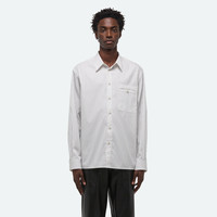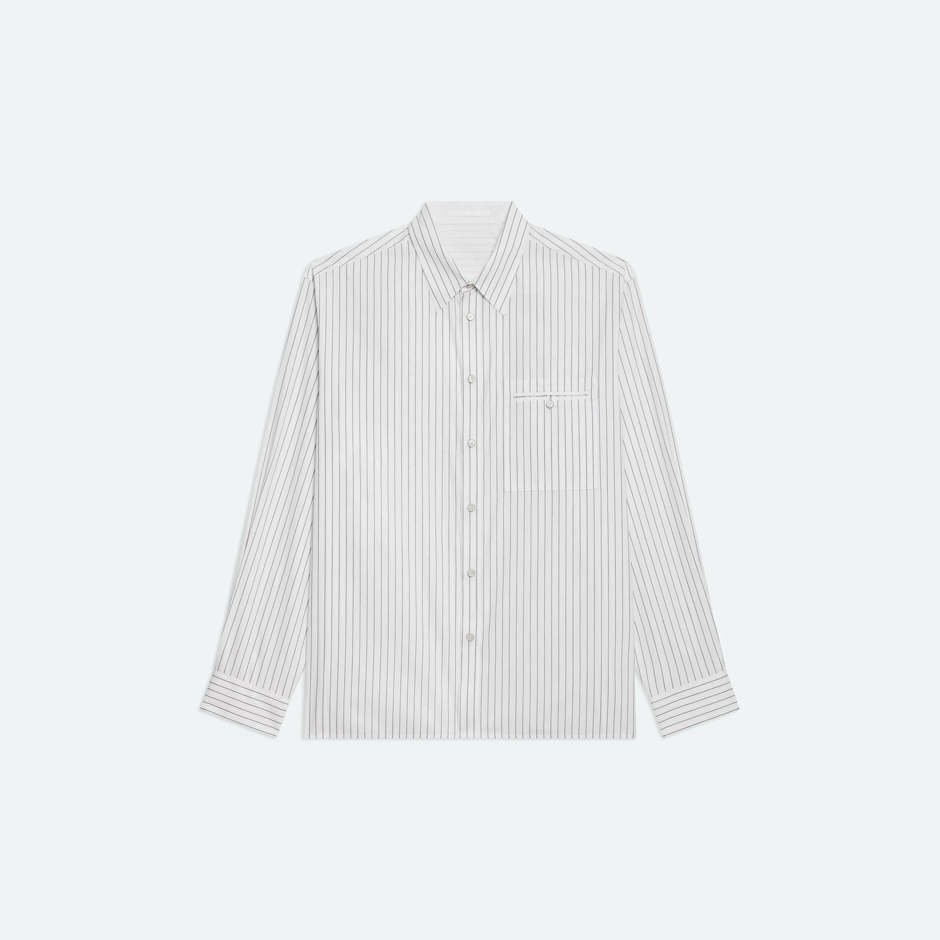 Classic shirt in double-pinstriped cotton poplin. Fits true to size. Model is 6'2" and wears size M. DETAILS - Pointed collar - Long sleeves - Double-welt pocket with button - Button front closure - Button cuffs with elongated placket - Straight hem with vents - Tonal leather logo patch on back - Relaxed fit - P10HM503 MATERIALS & CARE - Composition: 87% cotton, 13% polyester - Cool iron if needed. Professional dry clean only. - Fabric Production Country/Region: Japan - Weaving Country/Region: (of fabric) Japan - Dyeing Country/Region: (of fabric) Japan - Finishing Country/Region: (of fabric) Japan