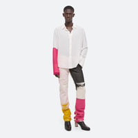 Relaxed silk shirt in with color blocked contrast chiffon half sleeve. Female Model is 5’9” and is wearing size XS DETAILS - Pointed collar - Long sleeves - Silk chiffon overlay - Button front closures - Female model is wearing men's XS for a relaxed fit - O01HM507 MATERIALS & CARE - Composition: 100% Silk - Professional dry clean only - Finished Garment Manufacturing Country/Region: China - Fabric Production Country/Region: Korea (South) - Weaving Country/Region: (of fabric) China - Dyeing Country/Region: (of fabric) China - Finishing Country/Region: (of fabric) China