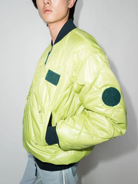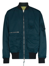 reversible zip-up bomber jacket Embodying Helmut Lang’s functional design style, this bomber jacket boasts a reversible design with soft quilting. To add to the utilitarian look, the piece is designed with multiple pockets. Imported Composition Lining: Polyester 100% Outer: Nylon 100%, Cotton 100% SIZE & FIT Model measurements Height 6 ft 2 in(1.88 m) Bust/Chest 37.4 in(95 cm) Hips 37.79 in(96 cm) Waist 30.31 in(77 cm) Measurement BUST 60.62 in(154 cm) FittingInformation This piece fits true to size. We recommend you get your regular size Cut for a loose fit Made with a mid-weight fabric