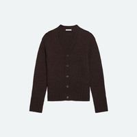 V-neck cardigan in a thick rib knit with exposed seam detail. Fits true to size. Model is 6'2" and wears size M. DETAILS - V-neck - Thick rib knit - Button front closure - Ribbed collar and button placket - Leather logo patch on back - P10HM703 MATERIALS & CARE - Composition: 80% wool, 20% polyamide - Dry clean with any solvent except trichloroethylene. - Fabric Production Country/Region: Italy - Dyeing Country/Region: (of fabric) Italy - Finishing Country/Region: (of fabric) Italy - Spinning: (of fabric) Italy