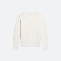 Relaxed cotton V-neck sweater in wide rib knit, inspired by vintage military gear. Fits true to size. Model is 6’2” and wears size M. DETAILS - V-neck overlay - Wide rib knit - Ribbed hem and cuffs - Subtle contrasting texture at yoke and hem - Relaxed fit - 05HM704 MATERIALS & CARE - Composition: 100% organic cotton - Dry clean with any solvent except trichloroethylene. - Finished Garment Manufacturing Country/Region: China - Fabric Production Country/Region: Italy - Dyeing Country/Region: (of fabric) Turkey - Finishing Country/Region: (of fabric) Turkey - Spinning: (of fabric) Turkey