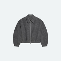 Relaxed bomber jacket in a neoprene-bonded wool. Exaggerated sleeves and an elastic hem create a gently rounded silhouette. Fits true to size. Model is 6’2” and wears size M. DETAILS - 2-way front zipper closure - Pointed collar - Elastic hem and cuffs - In-seam pockets - Leather logo patch at back - Relaxed fit - Unlined - P07HM405 MATERIALS & CARE - Composition: 60% polyester, 25% acrylic, 12% wool, 3% elastane - Professional dry clean only. - Fabric Production Country/Region: Italy - Weaving Country/Region: (of fabric) Italy - Dyeing Country/Region: (of fabric) Italy - Finishing Country/Region: (of fabric) Italy