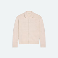 Knit shirt in wool blend. Made with a slub yarn that creates a variegated texture, and finished with an open ribbed collar and pintucked seam detail. Fits true to size. Model is 6'2" and wears size M. DETAILS - Ribbed open collar - Ribbed cuffs and hem - Pintucked seams at sleeves and center back - Metal-wrapped logo buttons - Relaxed fit - Q02HM702 MATERIALS & CARE - Composition: 100% cotton - Dry clean with any solvent except trichloroethylene. - Fabric Production Country/Region: Italy - Finishing Country/Region: (of fabric) Italy