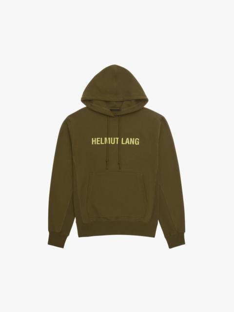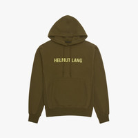 The Helmut Lang Logo Hoodie is a relaxed style in a compact French terry cloth with an HL outer space logo at the back and the front, drawstring hood, kangaroo pocket, and rib knit details throughout. DETAILS - 100% Cotton - Drawstring hood - Rib knit collar, cuffs, and hem - Long sleeves - Front kangaroo pocket - HL outer space logo - Imported - N09HM519 CARE - Machine wash cold inside out with like colors - Do not bleach, tumble dry, dry clean, iron print or patches - Lay flat to dry - Cool iron if needed FIT - Fits true to size - Model is 6’2” and is wearing size M