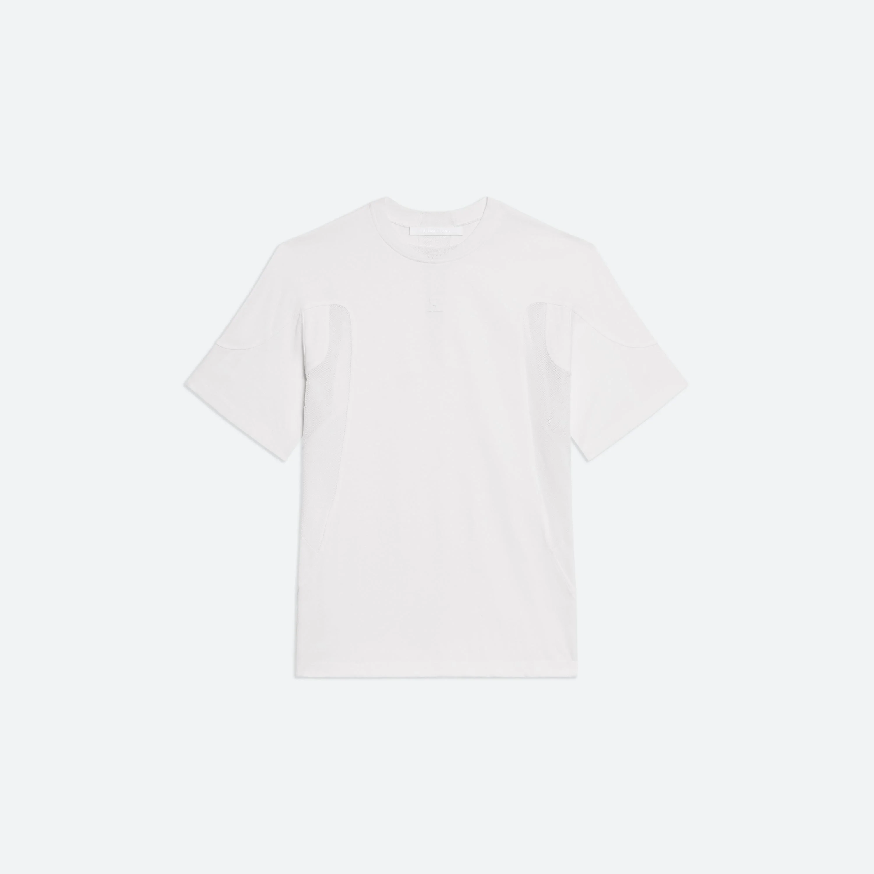 Our signature relaxed-fit crewneck tee with a paneled construction and mesh detailing. Fits true to size. Model is 6’1” and wears size M. DETAILS - Crewneck with mesh detail - Mesh panels throughout - Embossed logo on front - P02HM512 MATERIALS & CARE - Composition: 100% cotton - Machine wash cold inside out with like colors, do not bleach, do not tumble dry, cool iron if needed, do not iron on decoration, do not dry clean, lay flat to dry - Finished Garment Manufacturing Country/Region: Portugal - Fabric Production Country/Region: Portugal - Dyeing Country/Region: (of fabric) Portugal - Finishing Country/Region: (of fabric) Portugal