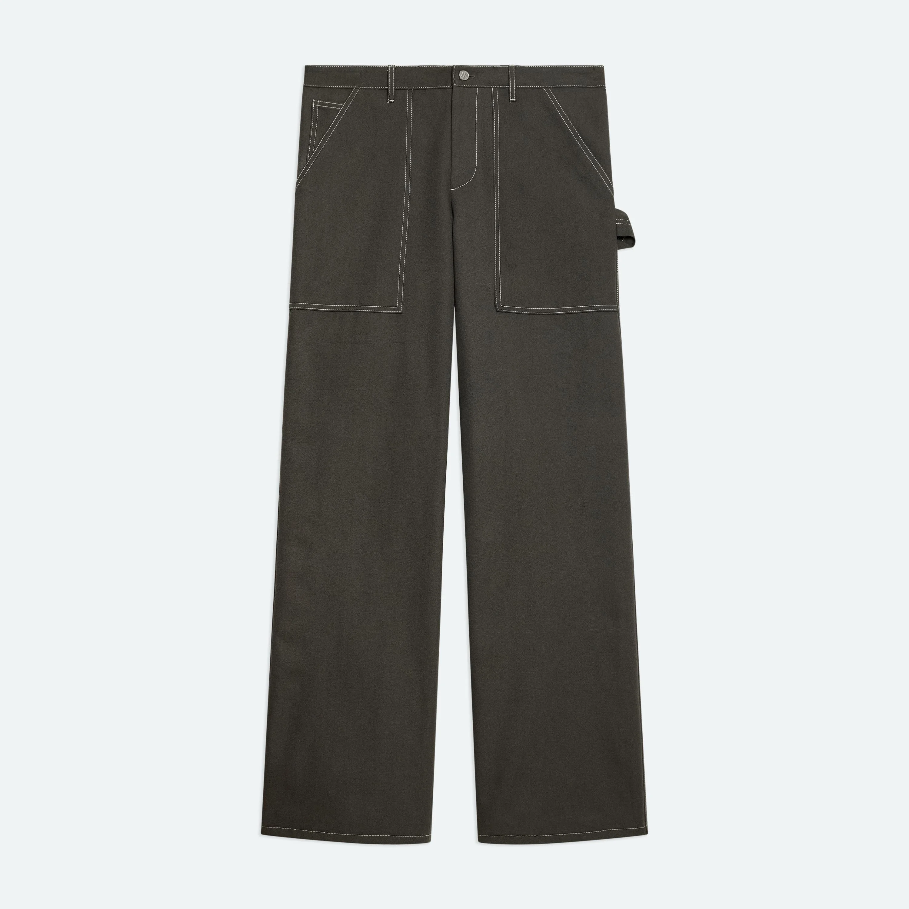 Workwear-inspired pants in a heavyweight cotton twill and finished with utility details. Matches the Carpenter Jacket. Fits true to size. Model is 6'2" and wears size 32. DETAILS - Zip fly with button closure - Five-pocket style - Belt loops and hammer loop - Leather logo patch on back - Straight fit - 33” inseam and 21 ½” leg opening - P10HM204 MATERIALS & CARE - Composition: 100% cotton - Cool iron if needed. Professional dry clean only. - Fabric Production Country/Region: Italy - Weaving Country/Region: (of fabric) Italy - Dyeing Country/Region: (of fabric) Italy - Finishing Country/Region: (of fabric) Italy