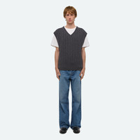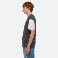 Ribbed sweater vest in a wool blend. Fits true to size. Model is 6'2" and wears size M. DETAILS - V-neck - Thick rib knit - Ribbed collar, cuffs, and hem - P10HM701 MATERIALS & CARE - Composition: 80% wool, 20% polyamide - Dry clean with any solvent except trichloroethylene. - Fabric Production Country/Region: Italy - Dyeing Country/Region: (of fabric) Italy - Finishing Country/Region: (of fabric) Italy - Spinning: (of fabric) Italy