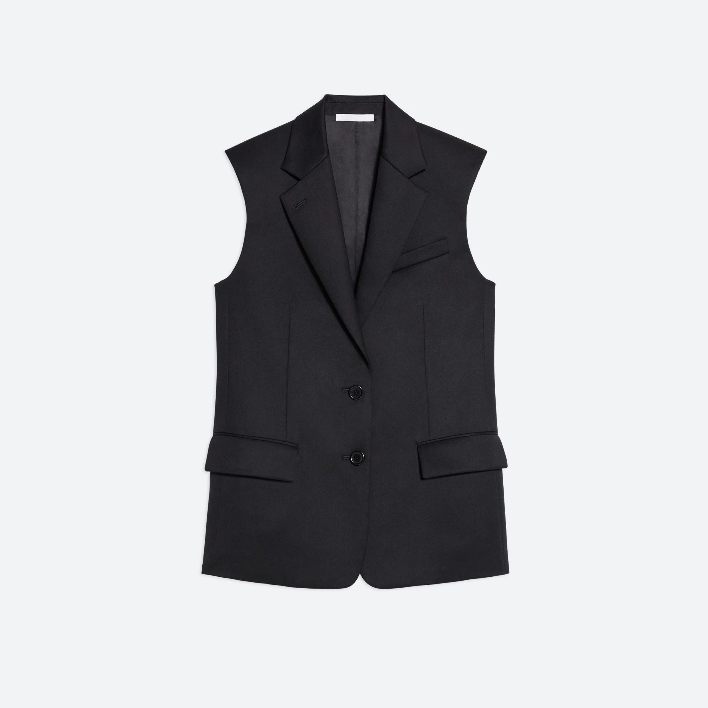 Classic sleeveless blazer vest in italian virgin wool with notched lapel and waist flap pockets. Fits true to size. Model is 6’2” and is wearing size 38 DETAILS - Notched lapels - Button front closures - Waist flap pockets - Relaxed fit - O02HM107 MATERIALS & CARE - Composition: 100% Virgin Wool - Professional dry clean only. - Finished Garment Manufacturing Country/Region: China - Fabric Production Country/Region: Italy - Weaving Country/Region: (of fabric) Italy - Dyeing Country/Region: (of fabric) Italy - Finishing Country/Region: (of fabric) Italy