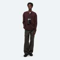 Classic waffle-knit henley with reinforced shoulders. Fits true to size. Model is 6'2" and wears size M. DETAILS - Ribbed neck with button closure - Reinforced shoulder patches - Tonal leather logo patch on back - Relaxed fit - P09HM502 MATERIALS & CARE - Composition: 100% cotton - Machine wash cold, inside-out, with like colors. Do not bleach. Do not tumble dry. Cool iron if needed. Do not dry clean. Lay flat to dry. - Fabric Production Country/Region: Portugal - Weaving Country/Region: (of fabric) Portugal - Dyeing Country/Region: (of fabric) Portugal - Finishing Country/Region: (of fabric) Portugal