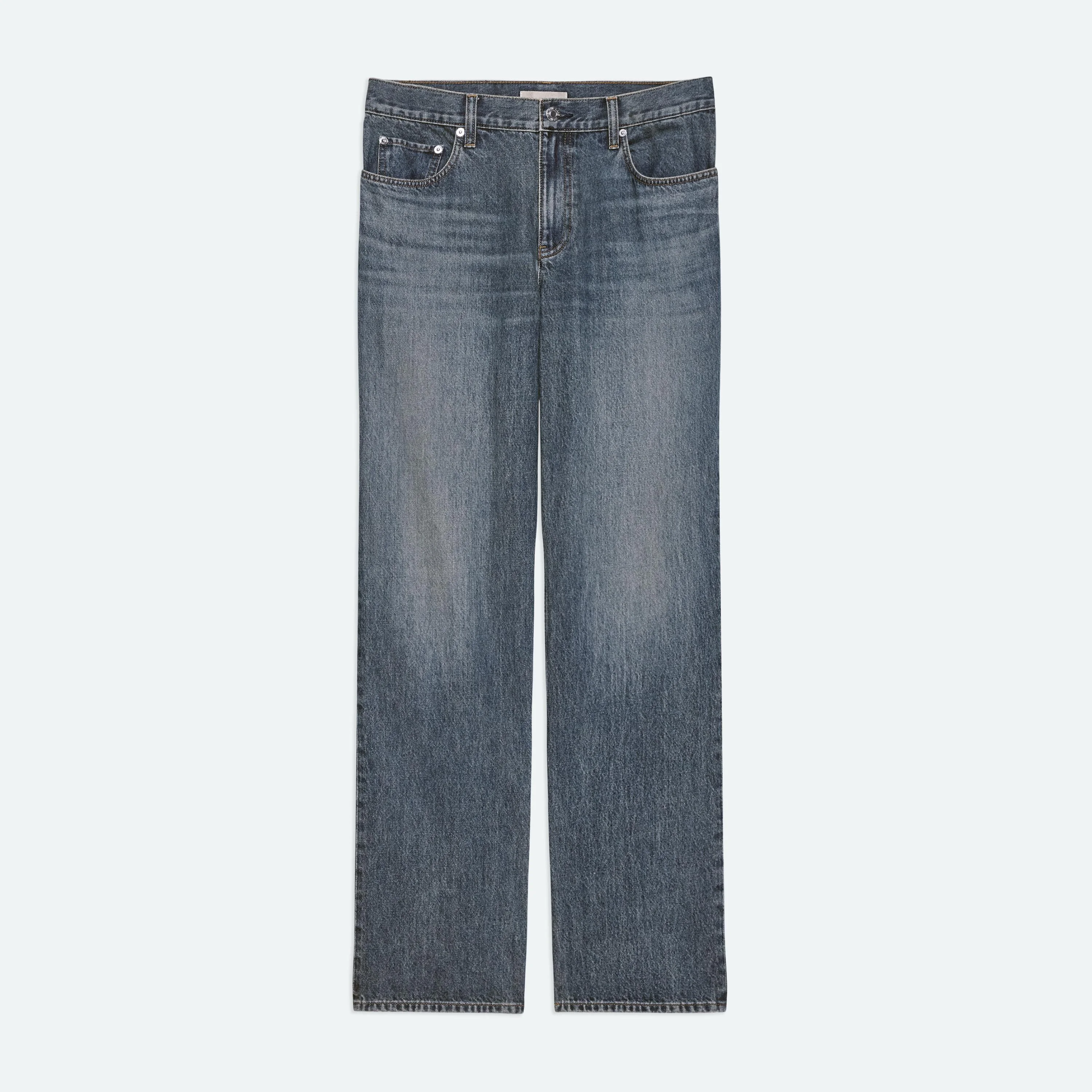 Straight-leg jeans in Italian denim with a dark indigo wash and a slight green tint. Our signature back seam perfects the fit and elongates the leg. Cut with a mid rise and a full-length leg, and finished with a branded leather patch on the back. Can be styled interchangeably with any other wardrobe pieces or on their own. Fits true to size. Model is 6'2" and wears size 32. DETAILS - Zip fly with button closure - Classic five-pocket style - Seam detail on back of leg - Belt loops - Branded leather patch - 33” inseam and 18 1/2” leg opening - Q02DM202 MATERIALS & CARE - Composition: 100% cotton - Machine wash cold, gentle cycle, with like colors. Wash inside-out. Do not bleach. Hang to dry in shade. Cool iron if needed. Dry clean with any solvent except trichloroethylene. Do not tumble dry. - Fabric Production Country/Region: Italy - Weaving Country/Region: (of fabric) Italy - Dyeing Country/Region: (of fabric) Italy - Finishing Country/Region: (of fabric) Italy