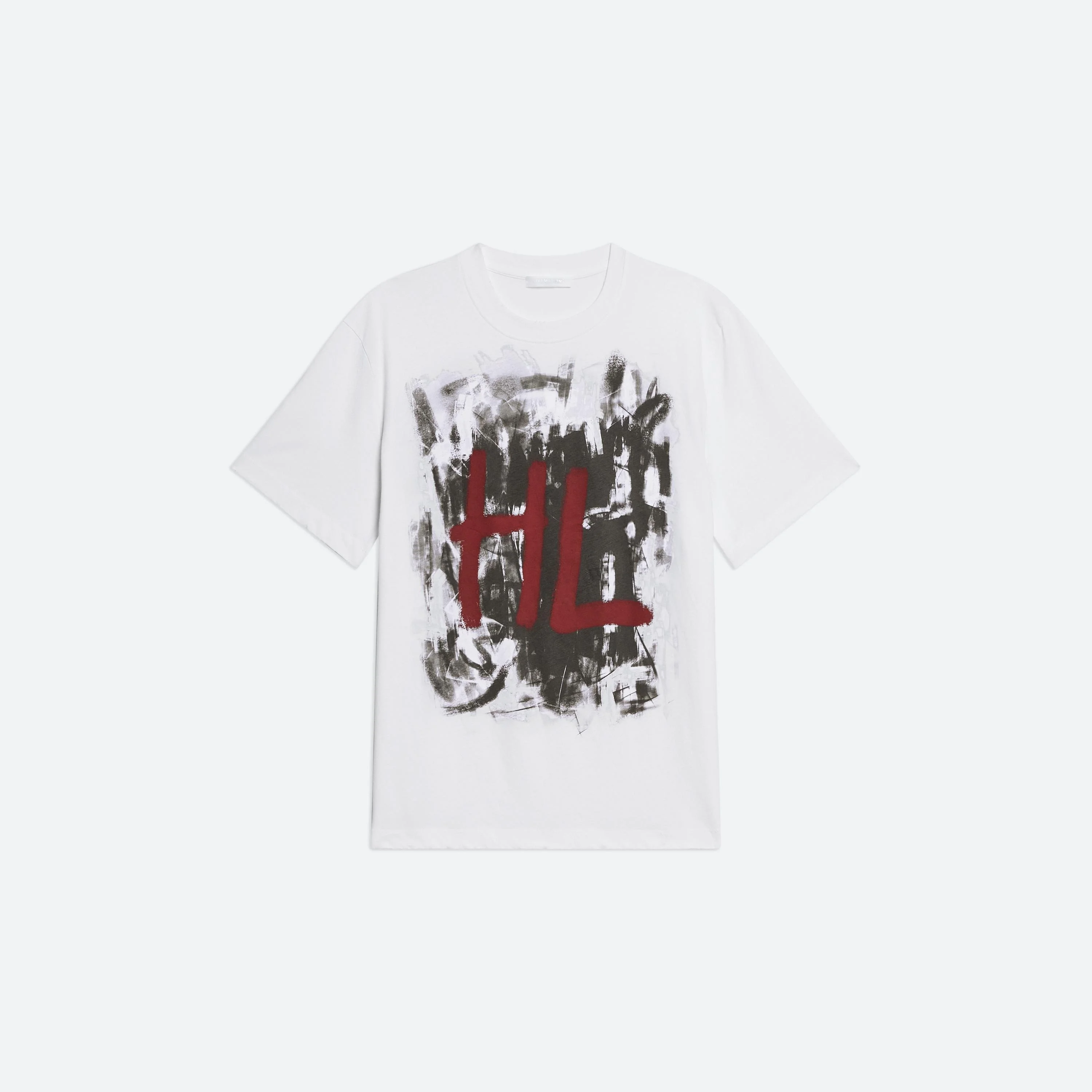 Our signature relaxed-fit crewneck tee with monochromatic scribble logo at front. Subtle distressing at the collar, cuffs, and hem create the feeling of a long-time favorite. Fits true to size. Model is 6'3" and wears size M. DETAILS - Crewneck - Short sleeves - Logo text on back - Relaxed fit - P02HM510 MATERIALS & CARE - Composition: 100% cotton - Machine wash cold inside out with like colors, do not bleach, do not tumble dry, cool iron if needed, do not iron on print, do not dry clean, lay flat to dry - Finished Garment Manufacturing Country/Region: Portugal - Fabric Production Country/Region: Portugal - Weaving Country/Region: (of fabric) Portugal - Dyeing Country/Region: (of fabric) Portugal - Finishing Country/Region: (of fabric) Portugal