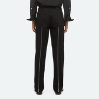 Carpenter jeans with a relaxed leg and classic utility details. Control the volume of the leg with the full-length zippers along the back. Fits true to size. Model is 6’2” and wears size 32. DETAILS - Wide leg zips to straight leg - Zip fly with button closure - Classic five-pocket style - Belt loops - 32” inseam - Relaxed fit - Leather logo patch at back - 100% cotton denim - 33” inseam and 23 1/4” leg opening - P07DM202 MATERIALS & CARE - Composition: 100% cotton - Machine wash cold, gentle cycle, with like colors. Wash inside-out. Do not bleach. Hang to dry in shade. Cool iron if needed. Dry clean with any solvent except trichloroethylene. Do not tumble dry. - Fabric Production Country/Region: Italy - Weaving Country/Region: (of fabric) Italy - Dyeing Country/Region: (of fabric) Italy - Finishing Country/Region: (of fabric) Italy