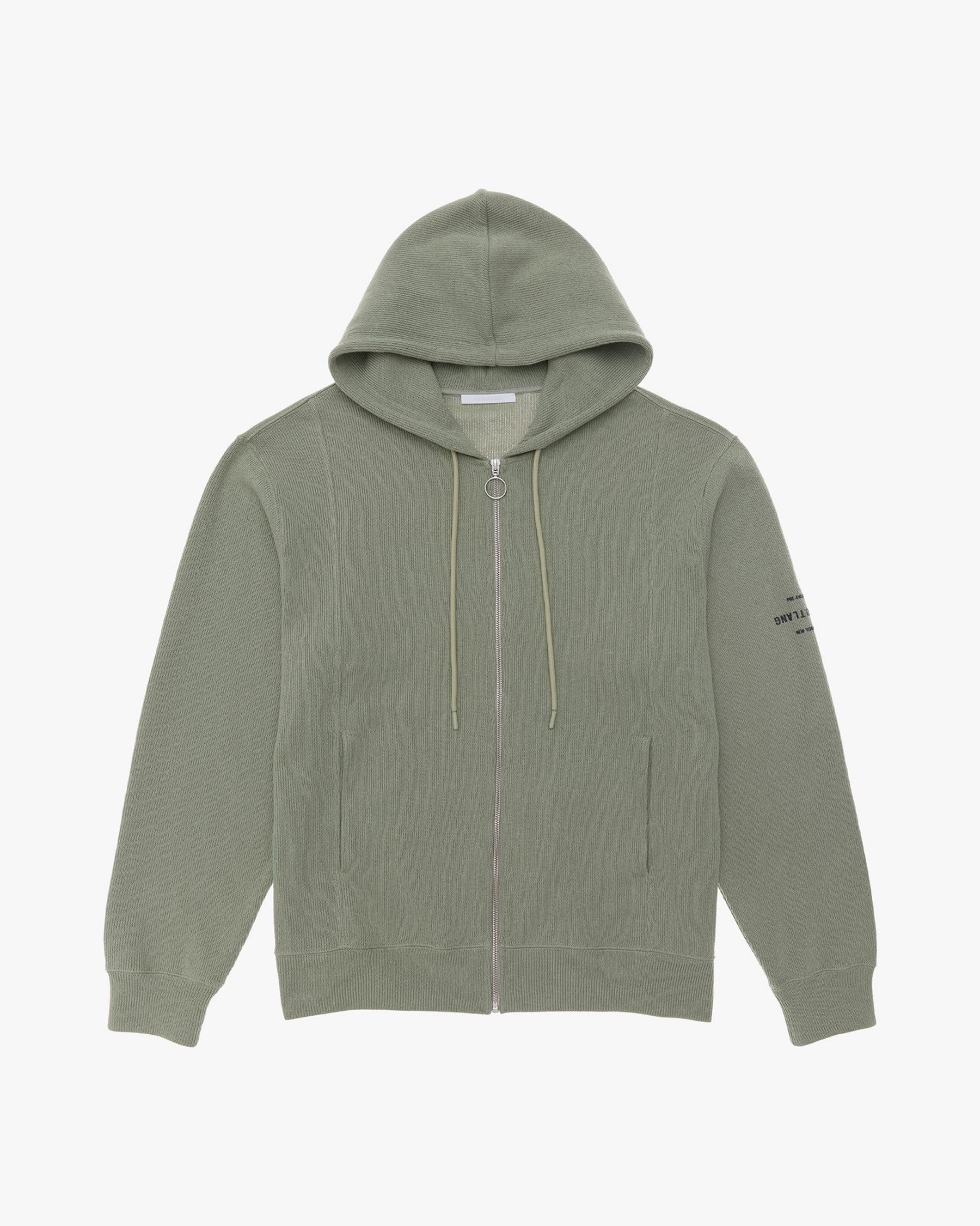 The Helmut Lang Logo Hoodie is a relaxed style in a heavy cotton knit with an HL logo at the sleeve, front zip closure, drawstring hood, kangaroo pocket, and rib knit details throughout. DETAILS - 76% Cotton, 23% Polyester, 1% Polyamide - Drawstring hood - Rib knit collar, cuffs, and hem - Long sleeves - Front kangaroo pockets - HL logo at sleeve - Front zip closure - Imported - N04HM519 CARE - Machine wash cold inside out with like colors - Do not bleach, tumble dry, dry clean, iron print or patches - Lay flat to dry - Cool iron if needed FIT - Fits true to size - Zhang is 6’2” and is wearing size M