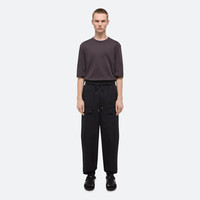 Relaxed jogger in crisp cotton-nylon blend with a fuller leg that tapers to the ankle for a slight carrot shape. Finished with flap pockets and elastic cuffs. Fits true to size. Model is 6’2” and wears size M DETAILS - Plush elastic waistband with drawstring - Faux fly - Elastic cuffs - Front flap and in-seam pockets - Back patch pockets with metal logo clip - Relaxed fit - O06HM205 MATERIALS & CARE - Composition: 75% Cotton, 25% Nylon - Finished Garment Manufacturing Country/Region: China - Fabric Production Country/Region: China - Weaving Country/Region: (of fabric) Korea (South) - Dyeing Country/Region: (of fabric) Korea (South) - Finishing Country/Region: (of fabric) Korea (South)