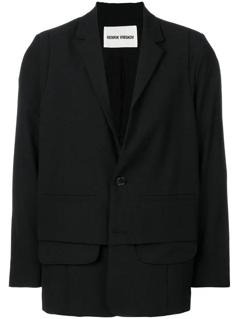 The Ants Blazer in Black from Henrik Vibskov AW21 collection. Highlights - blazer - button closure - jet pocket details - revealed pocket bags Made in Portugal Composition: 62% Polyester, 29% Viscose, 3% Spandex/Elastane Washing instructions: Dry Clean Only Designer ID: INSM601