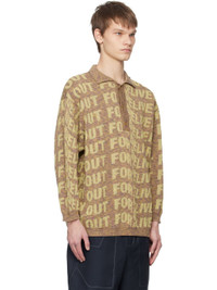 Knit cotton-blend polo. Jacquard text throughout. · Rib knit spread collar, hem, and cuffs · Three-button placket · Corozo hardware Supplier color: Yellow melange 70% cotton, 20% polyamide, 10% polyester. Made in Bulgaria 241392M212001