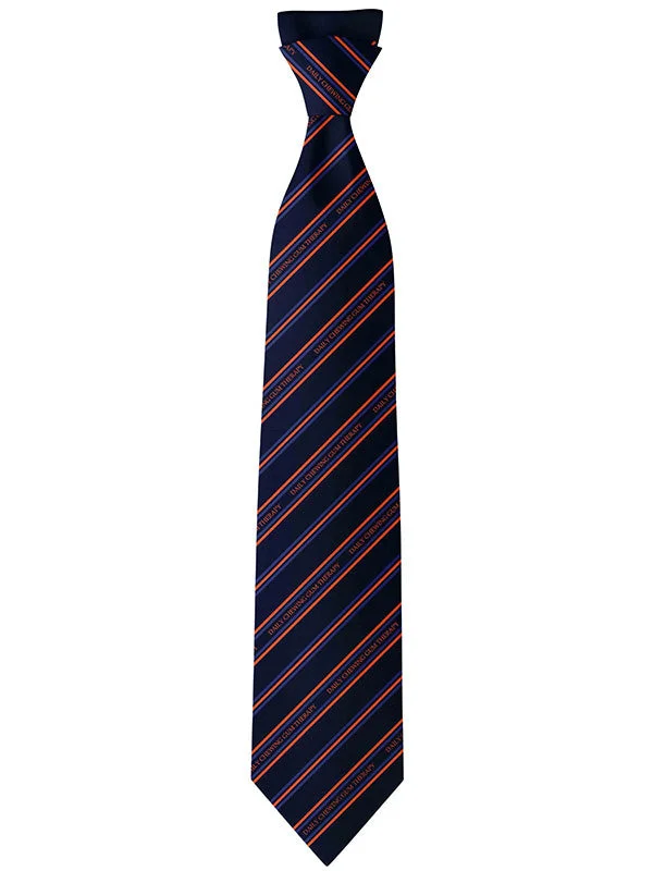 Chewing Tie in Dcgt Navy from Henrik Vibskov An extension from his Autumn Winter 2024 collection 'Daily Chewing Gum Therapy' Highlights - navy, purple, orange stripes - classic tie - collection name embroidered Made in United Kingdom Designer ID: INS-A909 Colour ID: 793 Dcgt Navy Materials 100% Recycled Polyester