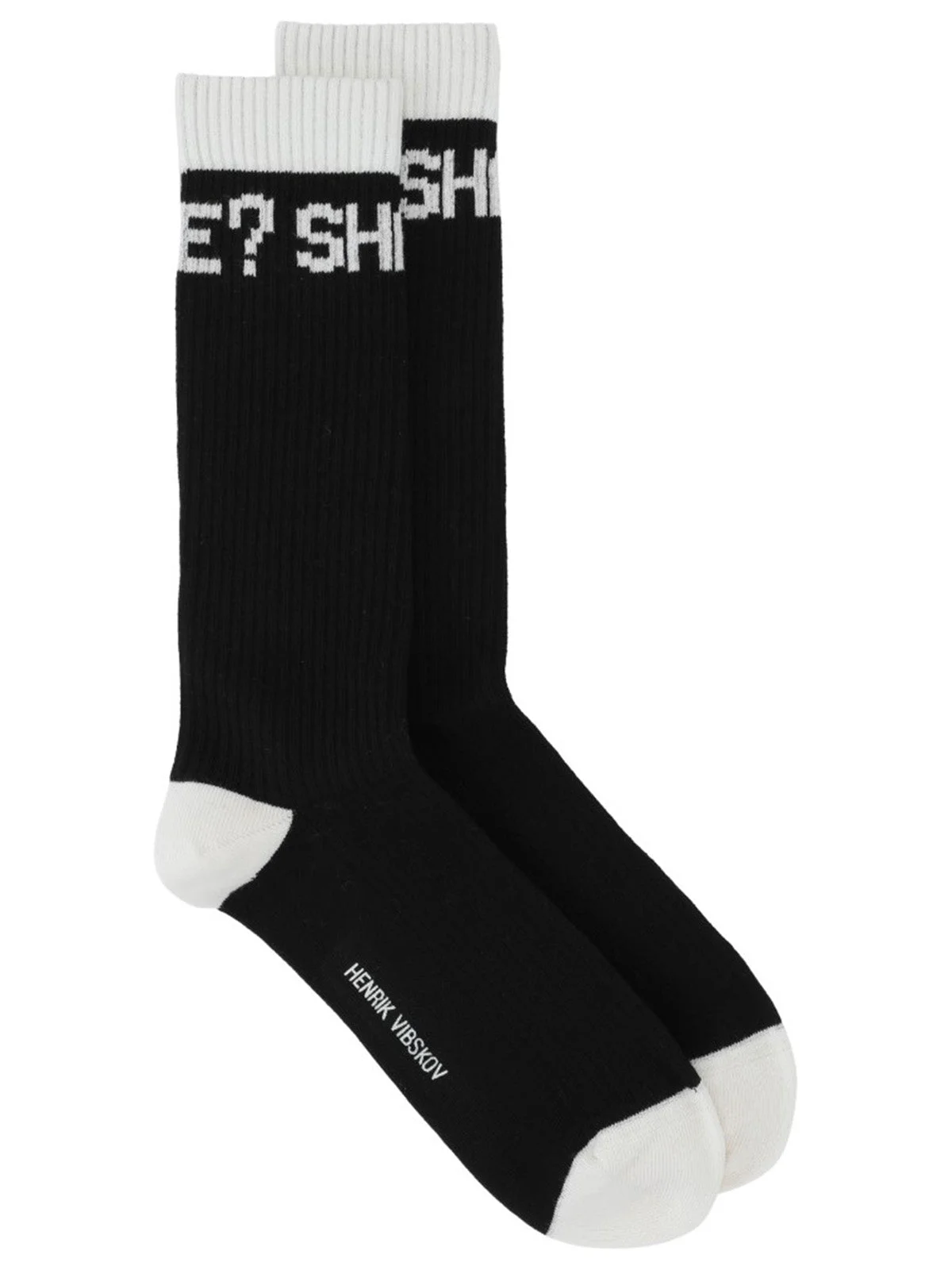 Cypher Sport Socks Homme in Black White Shall We from Henrik Vibskov's AW24 Studio Collection 'Daily Chewing Gum Therapy' Highlights - socks - mens Made in Portugal Composition: 74% Organic Cotton 13% Polyamide 12% Recycled Polyamide 1% Elastane Designer ID: AW24STUD-S912 Colour ID: 996 Black White Shall We Materials 76% Organic Cotton 10% Polyamide 12% Recycled Polyamide 2% Elastane