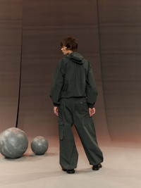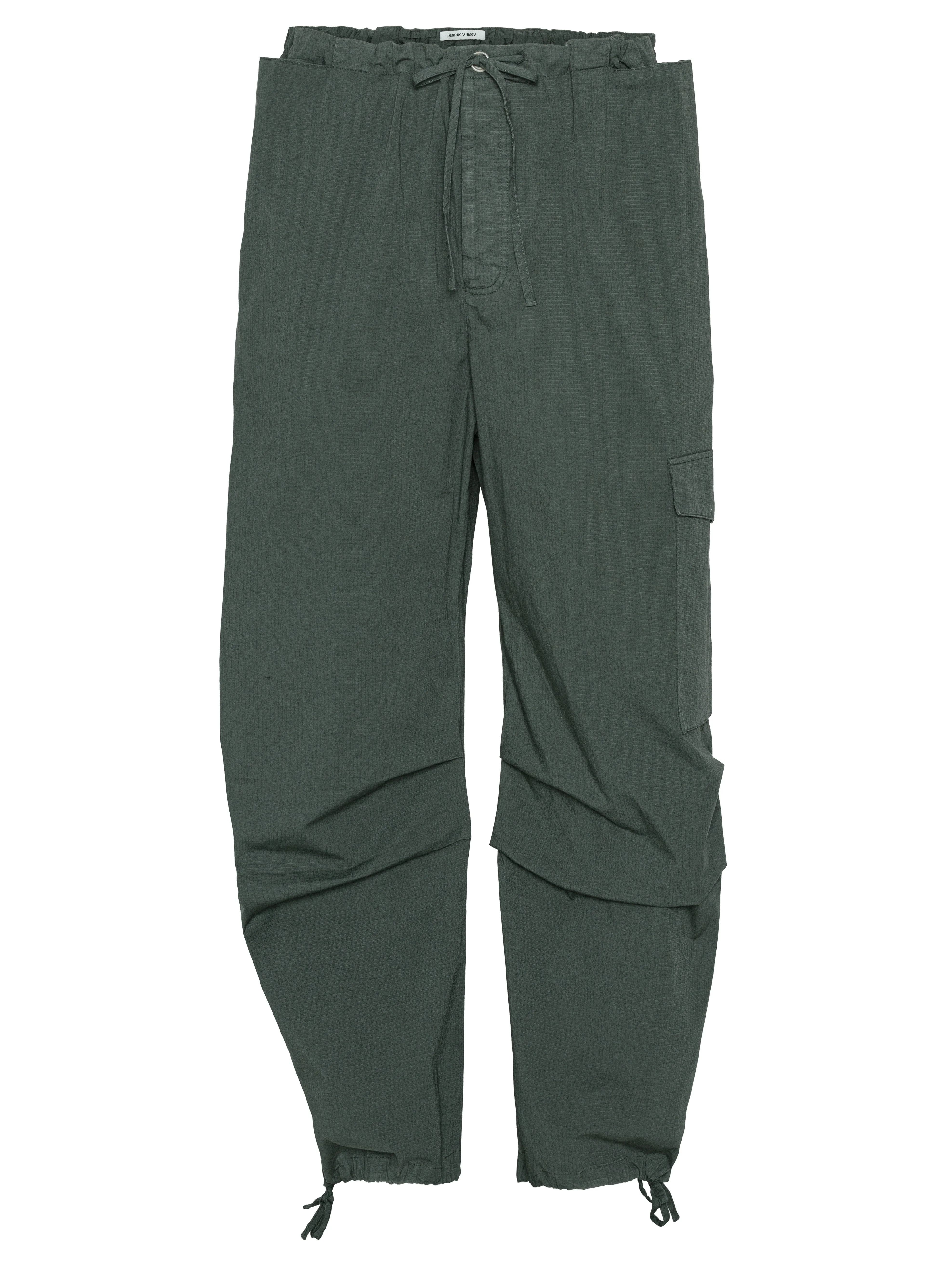 Field Pants in Dark Petrol from Henrik Vibskov's Autumn Winter 2025 Studio collection "A Bit Overwhelmed by the Opaque Resonance" Highlights - dark green-blue - elastic waist with drawstring - elastic hem with drawstring - side pockets Model is 182cm tall and wearing a size M Made in Bulgaria Designer ID: AW25STUD-M504 Colour ID: 969 Dark Petrol Materials 97% Organic Cotton 3% Elastane