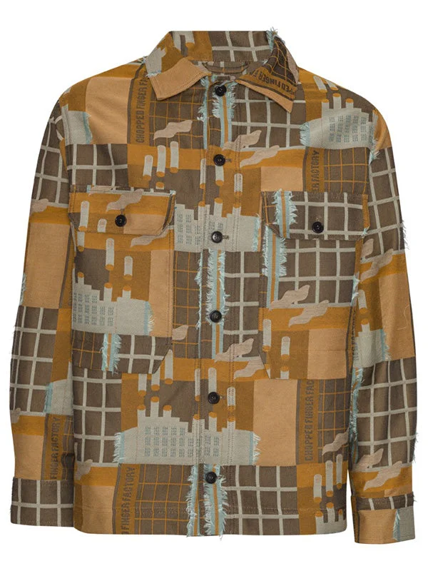 Field Shirt in Spice Finger Factory from Henrik Vibskov's SS25 Studio Collection 'The Orchestra of the Soft Assistance' Highlights - brown and curry hues - abstract print - classic collar - front button closure - long sleeves - straight hem The model is 184 cm and is wearing a size Medium Made in Bulgaria Designer ID: SS25STUD-M206 Colour ID: 553 Spice Finger Factory Materials 79% Organic Cotton 21% Recycled Polyester - do not wash - do not bleach - iron on low heat - Dry-Clean, normal cycle. Any solvent except trichloroethylene - do not tumble dry