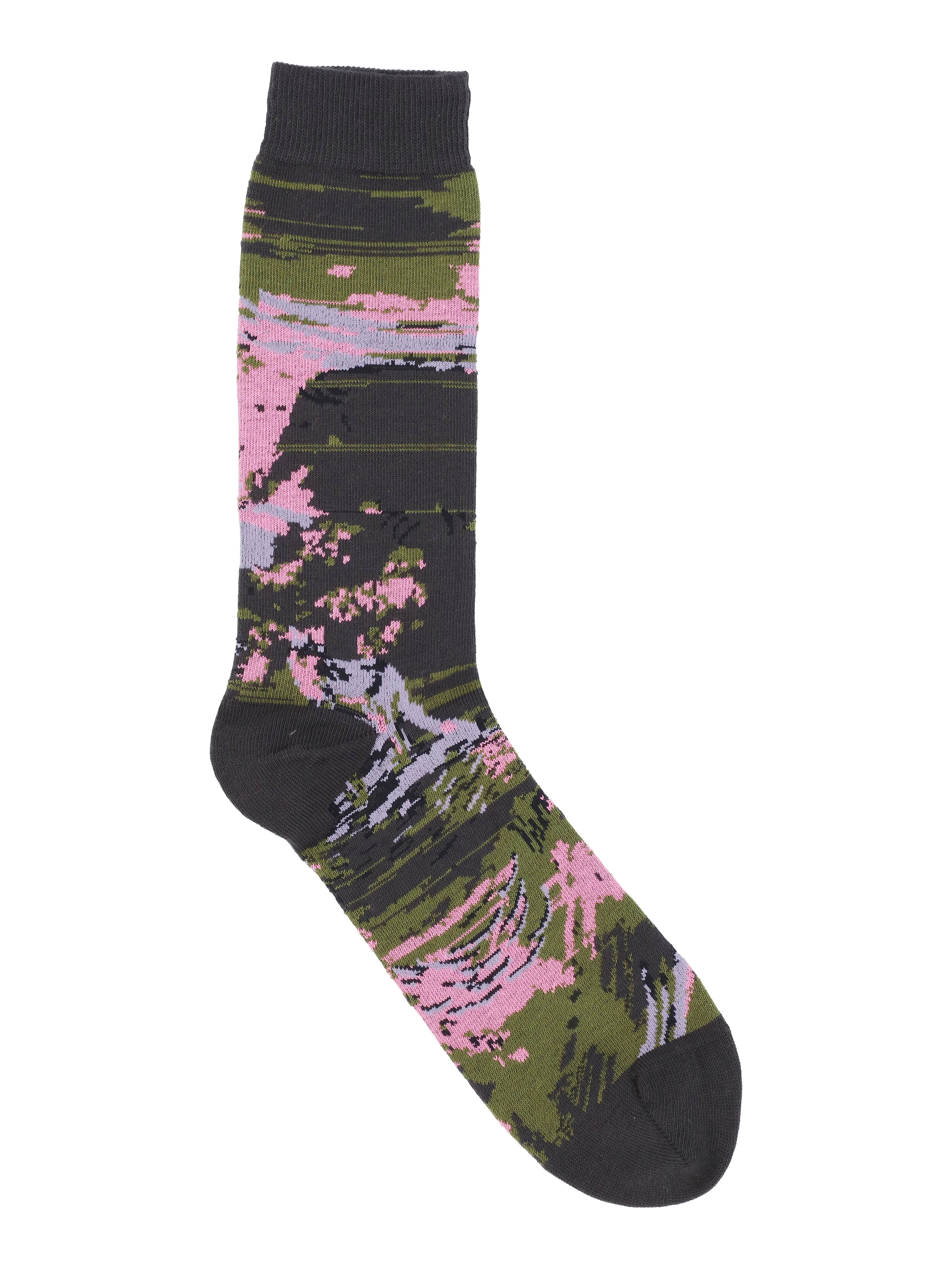 Foxy Socks in Black Foxy from Henrik Vibskov Spring/Summer 2026 Studio Collection ‘Everything Cracks Eventually – I’ll Be Gentle.’ Highlights - black - fox pattern in green, pink, purple Size: 41-45 EU Made in Portugal Designer ID: SS26STUD-S904 Colour ID: 955 Black Foxy Materials 66% Organic Cotton 19% Polyamide 14% Recycled Polyamide 1% Elastane
