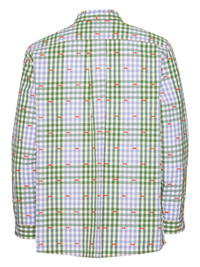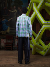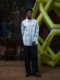 New Blou Shirt in Checks Fille from Henrik Vibskov Spring/Summer 2026 Studio Collection ‘Everything Cracks Eventually – I’ll Be Gentle.’ Highlights - purple and green - checks - orange contrast stitching - collar - front button closure - long sleeves - front chest pocket - straight hem Model is 191cm tall and is wearing a size M Made in Bulgaria Designer ID: SS26STUD-M214 Colour ID: Checks Fille Materials 100% Organic Cotton