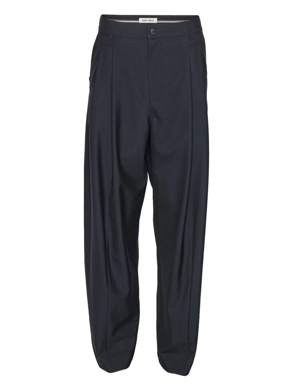pleated trousers navy blue pleated design side pockets button fastening straight leg Imported Composition Wool 100% Washing instructions Read Manufacturer Guidelines