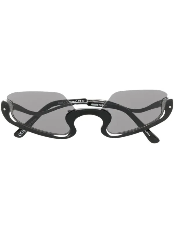 Rollo Glasses in Black from Henrik Vibskov's Spring Summer 2023 collection 'Bird In Face' Highlights - black frame - black glass - curved design - comes with protective case Made in Switzerland Composition: 100% Acetate Designer ID: SS23STUDIOA910