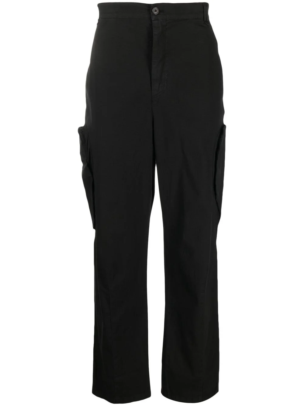 straight-leg cotton cargo trousers Highlights - Caviar black - Stretch organic cotton - Straight leg - Concealed fly and button fastening - Belt loops - Two side slit pockets - Multiple cargo pockets Imported Composition Organic Cotton 97%, Spandex/Elastane 3%