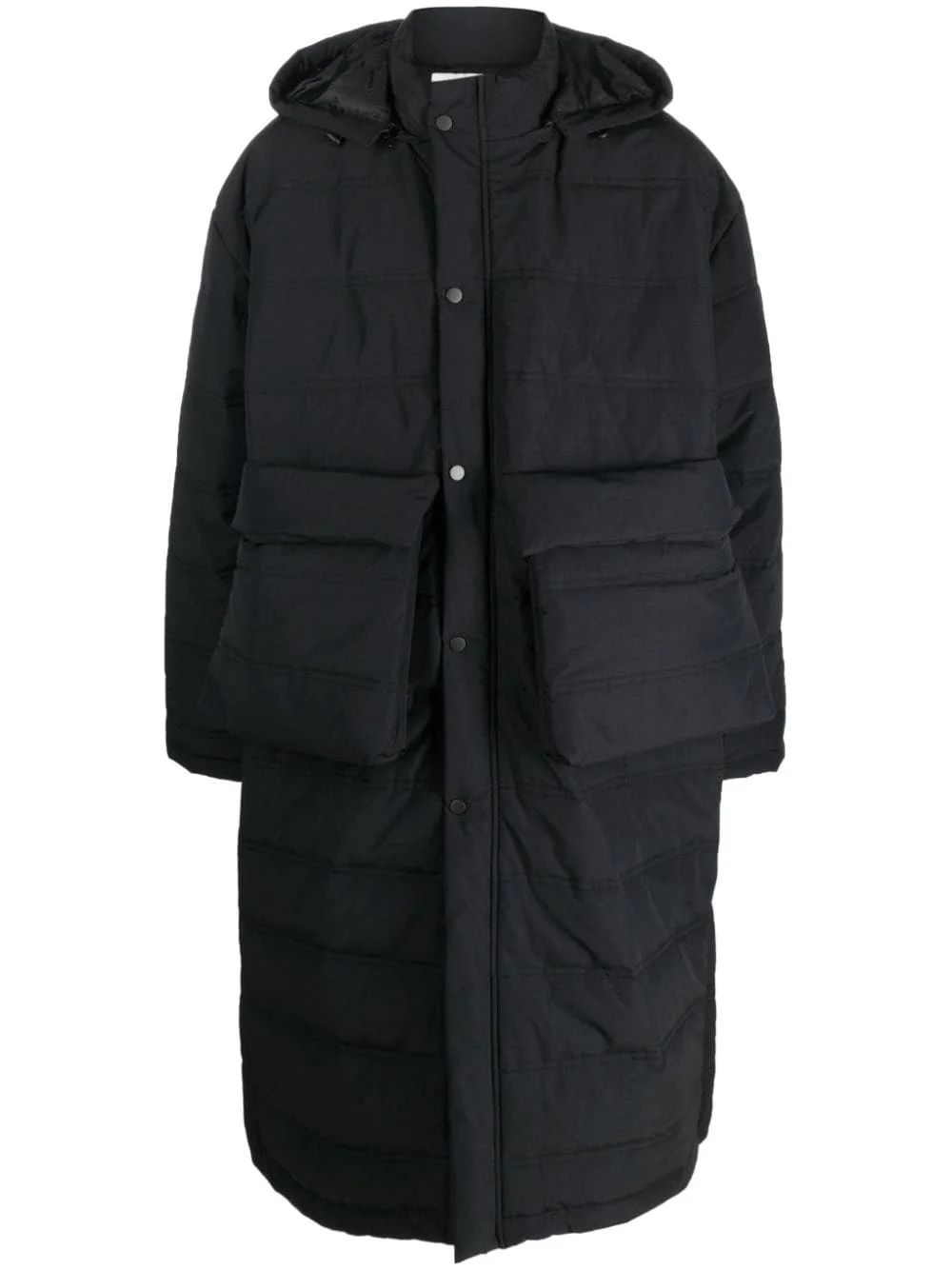 Tabasco padded hooded coat Highlights - Black - Padded design - Classic hood - Front press-stud fastening - Long sleeves - Two front flap pockets - Mid-length Imported Composition Polyester 100% SIZE & FIT Model measurements Height 6 ft 2 in(1.89 m) Bust/Chest 38.97 in(99 cm) Hips 38.18 in(97 cm) Waist 32.28 in(82 cm) FittingInformation Designed to be unstructured, offering a loose fit throughout Made from a padded non-stretch fabric, giving it no natural elasticity This piece fits true to size – take your usual size
