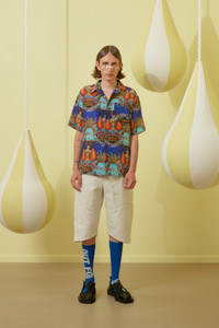 Transfered Shirt in Boxing Navy Collage from Henrik Vibskov's Spring Summer 2024 collection 'The Unboxing Waltz Tutorial'. Highlights - blue/multicolour - crepe de chine - all-over graphic print - box-pleat detail - semi-sheer construction - pointed flat collar - front button fastening - drop shoulder - short sleeves - chest patch pocket - straight hem - unlined Made in China Designer ID: SS24STUD-M203 Colour ID: 752, Boxing Navy Collage Materials 100% Silk