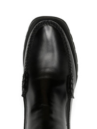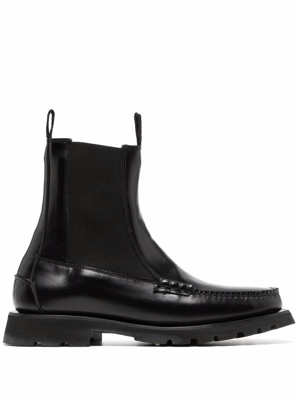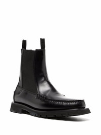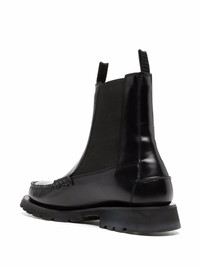 elasticated-panels ankle boots black calf leather tonal design elasticated side panels double pull-tab at the opening round toe slip-on style branded insole flat rubber sole Imported Composition Outer: Calf Leather 100% Lining: Calf Leather 100% Sole: Rubber 100% SIZE & FIT Measurement CIRCUMFERENCE 10.23 in(26 cm) HEEL 1.29 in(3.3 cm) HEIGHT 7.48 in(19 cm) Sole height 0.59 in(1.5 cm)