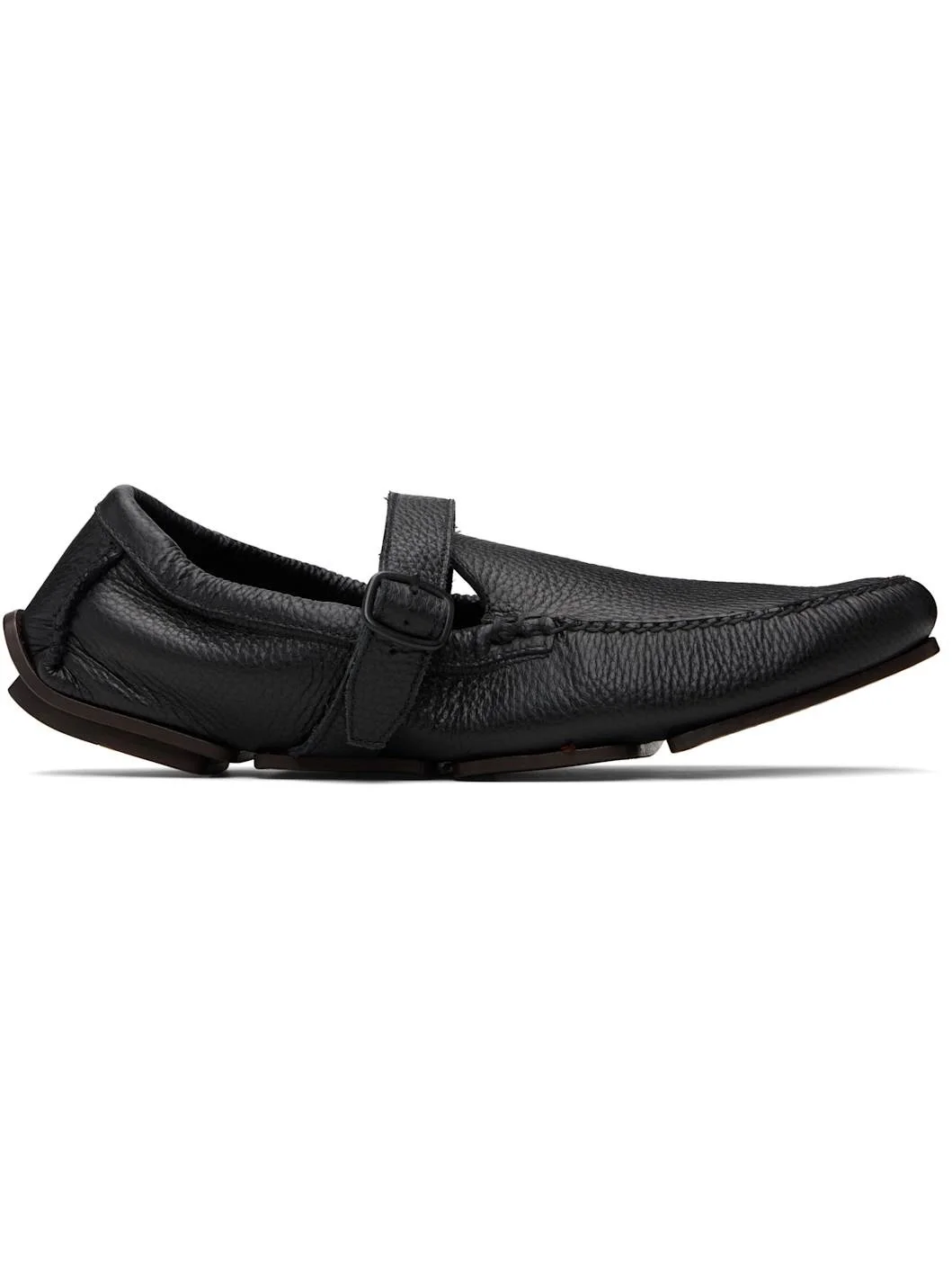 Grained leather loafers. · Moc toe · Pin-buckle strap at vamp · Elasticized collar · Buffed leather lining · Leather sole with rubber injection Supplier color: Black Upper: leather. Sole: leather, rubber. Made in Spain 252991M231012