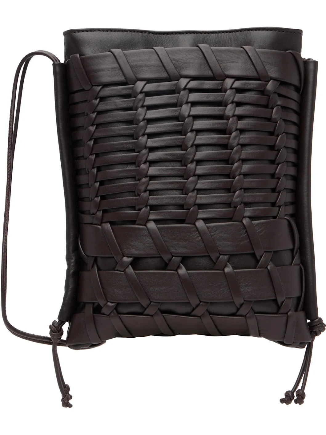 Grained calfskin pouch. · Adjustable crossbody strap · Braided detailing and patch pocket at face · Magnetic closure · Organic cotton canvas lining · H8.5" x W7" x D1.5" Supplier color: Dk brown Calfskin. Made in Spain 261991M171000