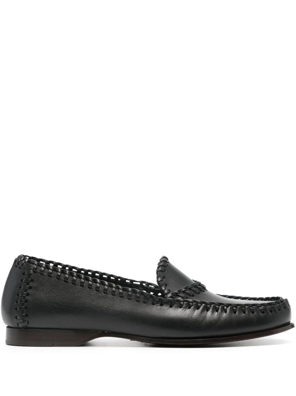 Sastre leather loafers Highlights - Black - Calf leather - Smooth grain - Almond toe - Braid whipstitch trim - Branded leather insole - Unlined - Flat leather sole - Slip-on style Imported Composition Outer: Calf Leather 100% Sole: Calf Leather 100% Lining: Calf Leather 100% SIZE & FIT Measurement HEEL 0.59 in(1.5 cm)
