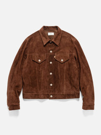 The HERILL Lamb Suede Jacket reinterprets the classic Type 3 silhouette with a refined, luxurious touch. Crafted from an elegant lamb suede in a rich brown tone, it combines the rugged structure of traditional denim jackets with the softness and natural texture of fine suede. The supple leather drapes comfortably while maintaining shape, enhanced by signature Type 3 details—pointed “V” seams, chest flap pockets, and adjustable hem cinches. A timeless balance of heritage design and understated luxury. DETAILS - 25-011-HL-8130-31 - 100% Lamb Leather - Regular fit - V seams at front - Rivet buttons throughout - Button front closure - Button flap chest pockets - Button cuffs - Button adjustable hems - Made in China