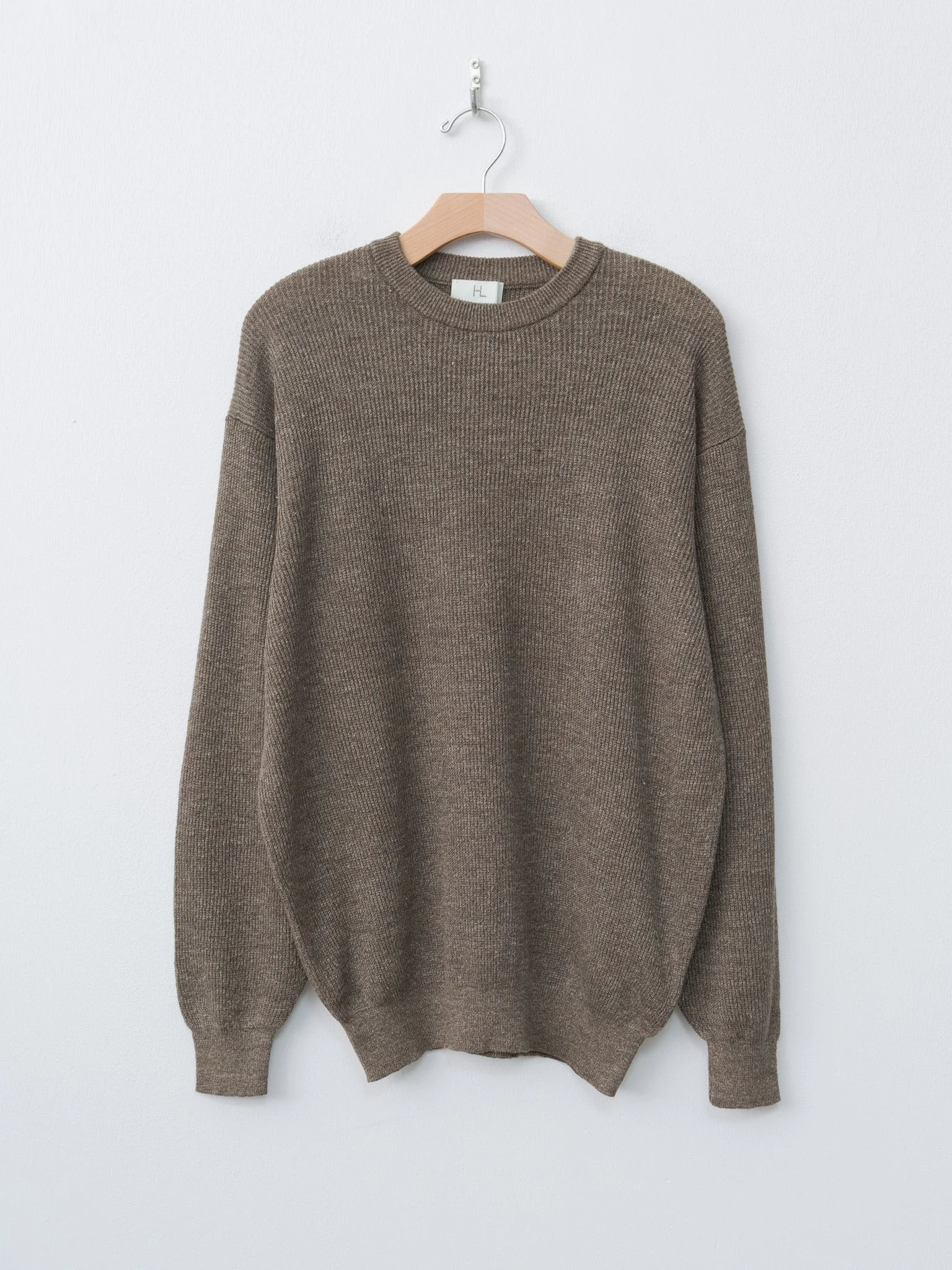 Linen/Cotton Ribstitch Crewneck Knit - Brown