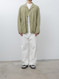 Wide leg trousers constructed from a textured, 'nep' denim cotton. It features large front and back patch pockets, a button fly, belt loops and tonal stitching throughout. Wide, straight fit. - Made in Japan - 100% Cotton - Available in White - The model is 6'1"/185 cm and wears size 2/M
