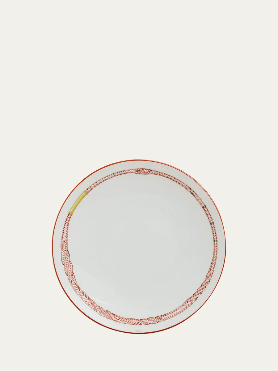 The Tressages Equestres line offers an unexpected glimpse into the equestrian sphere, highlighting the details of harnesses and passementeries. The original pen and gouache drawing dress the collection. Designed by Virginie Jamin Decorated using handlaid chromolithography printing Made of porcelain Approx. 10.6"Dia Sold individually Dishwasher and microwavesafe Made in France