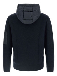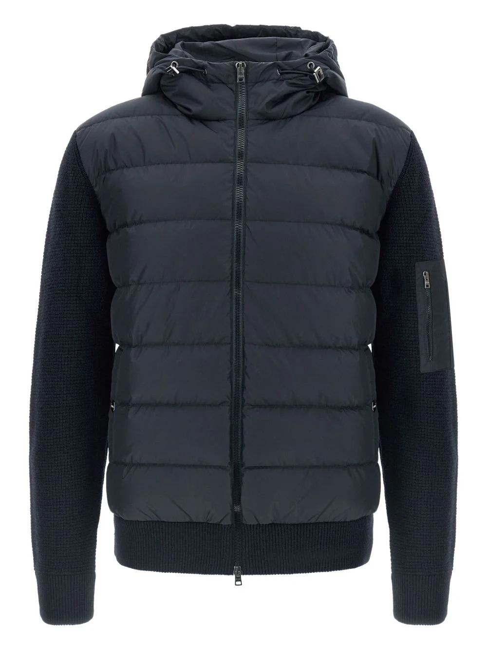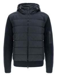 padded-knitted down jacket Highlights - Navy blue - Padded panel - Knitted sleeves - Drawstring hood - Front zip closure - Front pockets Imported Composition Wool 100% Washing instructions Read Manufacturer Guidelines