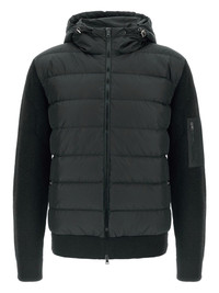 hooded quilted-panel jacket Highlights - Black - Wool knit - Padded panel - Front zip closure - Front pockets - Cuffed sleeves Imported Composition Wool 100% Washing instructions Read Manufacturer Guidelines