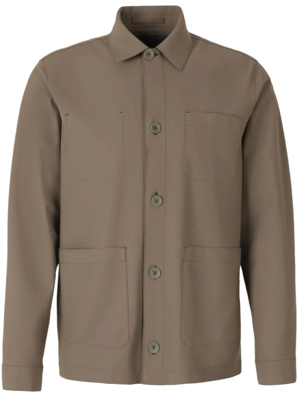 button-up overshirt Highlights - Khaki - Front button fastening - Three front patch pockets - Buttoned cuffs - Classic collar Imported Composition Polyamide 73%, Elastane 27%