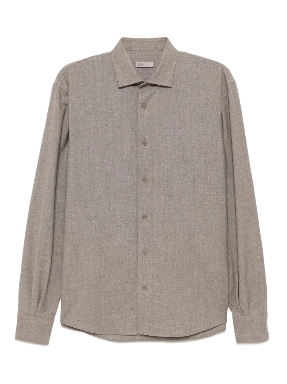 button-up shirt Highlights - Light brown - Front press-stud fastening - Classic collar - Long sleeves - Buttoned-cuff sleeves Imported Composition Wool 78%, Viscose 13%, Silk 5%, Elastane 3%, Linen/Flax 1% SIZE & FIT Model measurements Height 6 ft 2 in(1.87 m) Bust/Chest 33.07 in(84 cm) Hips 35.43 in(90 cm) Waist 26.77 in(68 cm) FittingInformation Designed for a regular fit, allowing for a comfortably loose fit throughout the body Made from a midweight stretch fabric, this piece offers elasticity and flexibility when worn Washing instructions Dry Clean Only