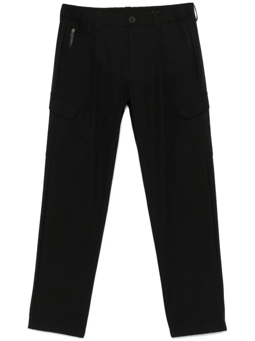 cargo tapered trousers Highlights - Black - Concealed fly and button fastening - Belt loops - Two diagonal pockets to the sides - Two side cargo pockets Imported Composition Outer: Polyester 100% Lining: Polyester 100% SIZE & FIT Model measurements Height 6 ft 2 in(1.87 m) Bust/Chest 36.41 in(92.5 cm) Hips 37 in(94 cm) Waist 29.52 in(75 cm) FittingInformation Designed for a tapered leg, offering a loose unrestricted fit over the leg with a closer fit towards the ankle Adjust this piece’s waistband to your preference using the drawstring Made from a lightweight non-stretch fabric, this piece offers minimal elasticity when worn Washing instructions Hand Wash
